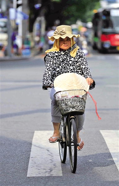 今天是二十四节气中的立秋。可是,夏天并没有告別的意思,依旧持续“烤验”浙南大地。昨日下午,温州市区街头热浪滚滚,不少骑车的市民为了防晒“全副武装”。