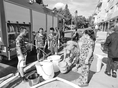 持续高温导致泰顺县部分山泉水断流,8月5日下午,得知泰顺县残疾人小康阳光庇护中心用水紧张,泰顺消防官兵派出一辆装有5吨饮用水的消防车上门送水。胡承绍摄