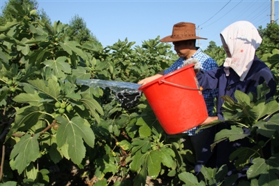 龙湾瑶溪街道璋川农副产品专业合作社为保证500亩无公害无花果丰收,专门召开了高温抗旱会议,指导百余名农民科学养护和安全作业,每天清晨或傍晚不定期给树苗浇水,早晨采摘果实,安全作业和稳定增收两不误。叶晓东林敏