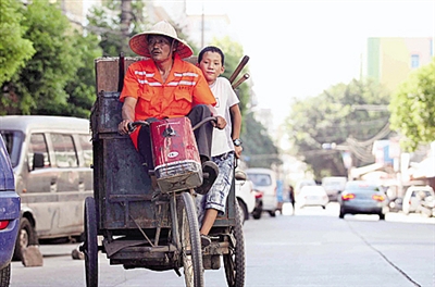张红军与儿子李建斌一起“出车”,为路面进行保洁。