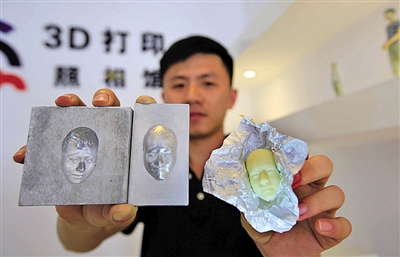 不一样的巧克力市区朔门街一家3D打印照相馆推出了3D头像巧克力的情人节礼物。客户可通过3D扫描技术,做出自己面部的浇筑模具,然后倒入食材就能做出自己的头像巧克力,既烂漫又创新。刘伟摄