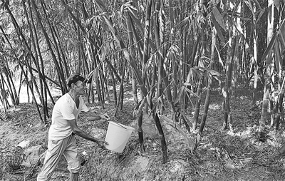下午6点左右,陈国标拎着一只水桶,细心地把水浇到竹子的根部,一路往家里去,一路扯开嗓门吆喝:“用过的水别乱倒,送到山脚下去浇马蹄笋,再没水,今年的马蹄笋就算到头了。”陈国标说,平阳素有“马蹄笋之乡”的美誉,而平阳的马蹄笋,又数南湖社区的最好吃。竹笋遇水才长得快,连日干旱,严重影响了马蹄笋的产量。当缺水严重到竹笋无法萌出新芽,就算以后再多的雨水,也不会有笋破土了。依照眼下的供水情况,根本无法顾及到马蹄笋的浇灌。笋农黄老伯说:“平常马蹄笋可以从端午节吃到中秋节,如果再不想办法,今年看来连七月十五都撑不到了。”
