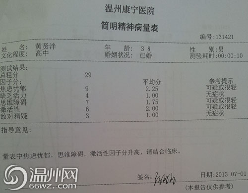 黄贤泮的哥哥黄贤湘告诉记者,弟弟曾经是个军人,为人耿直。这次被人冤枉受的刺激非常大,回来之后经常会情绪失控,因此家人将其带到温州市鹿城区的康宁医院(主治精神疾病)治疗。