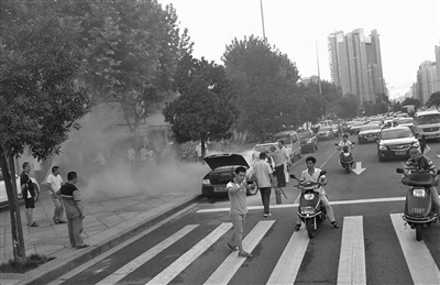 私家轿车路边自燃 邻居齐力灭火公交司机停车相助