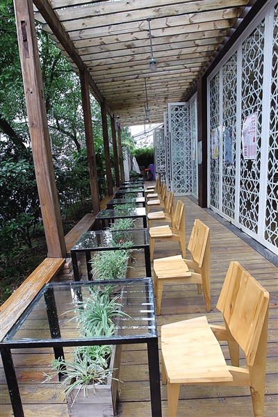 在东瓯智库,旧厂房的过道被改造成这般漂亮的休闲长廊。 本版摄影 赵用