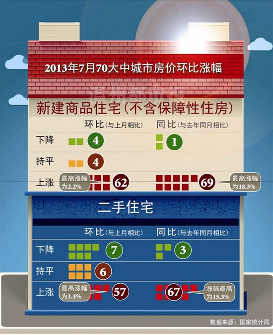 七月份70个城市新建商品住宅价格仅温州同比下降