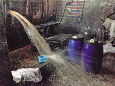 今年7月15日,鹿城区环保局执法人员在藤桥镇下岸北路排查时,发现一非法加工点大门紧闭,却不时发出机器声响。经调查,发现此加工点暗地从事非法制革加工,含重金属的生产废水直接排入戍浦江,污染附近水体。执法人员蹲守多日,8月11日该加工点再次非法生产时被当场查获,随后环保部门立即通知藤桥镇政府和当地派出所联合打击取缔,并对加工点外排的废水现场取样检测。