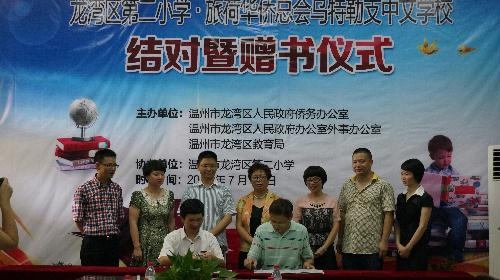 仪式上,龙湾区第二小学校长李新顺和荷兰乌特勒支中文学校校长胡云飞分别在合作协议书上签字,建立长期的文化教育交流合作关系。同时,龙湾区第二小学还为荷兰乌特勒支中文学校捐赠了200多册中文图书。