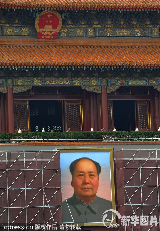 2013年9月4日,北京天安门城楼开始日常修缮,城楼的下半部分已被红色围挡遮住,但在天安门城楼附近游览的游客仍兴致不减。据悉,天安门城楼每年国庆前会进行一次外墙粉刷、修缮,并于国庆节前完工,修缮期间正常迎接游客参观。