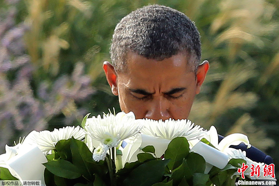 当地时间2013年9月11日,美国华盛顿,美国总统奥巴马在五角大楼9·11纪念馆前敬献花圈。