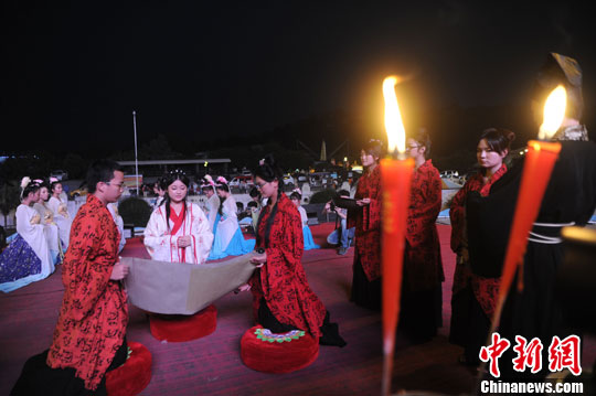 重庆市民穿汉服出街 演绎祭月仪式