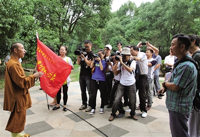 龙岗寺觉乘师傅为文脉之旅采风团成员做介绍。黄作富摄