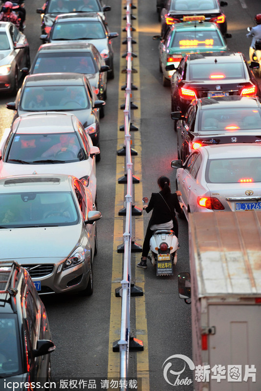 2013年10月22日傍晚,广东惠州,下班高峰期,不少电动车和摩托车都在惠州大道上和机动车共用车道。