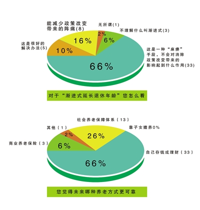 随着我国人口老龄化时代到来,改革社会养老体系不止一次被讨论。对于《中共中央关于全面深化改革若干重大问题的决定》中提出的渐进式延迟退休年龄政策,记者通过网络和街头随机抽样的形式,由50位市民完成了《关于延迟退休及缴纳社保年限的调查问卷》。
