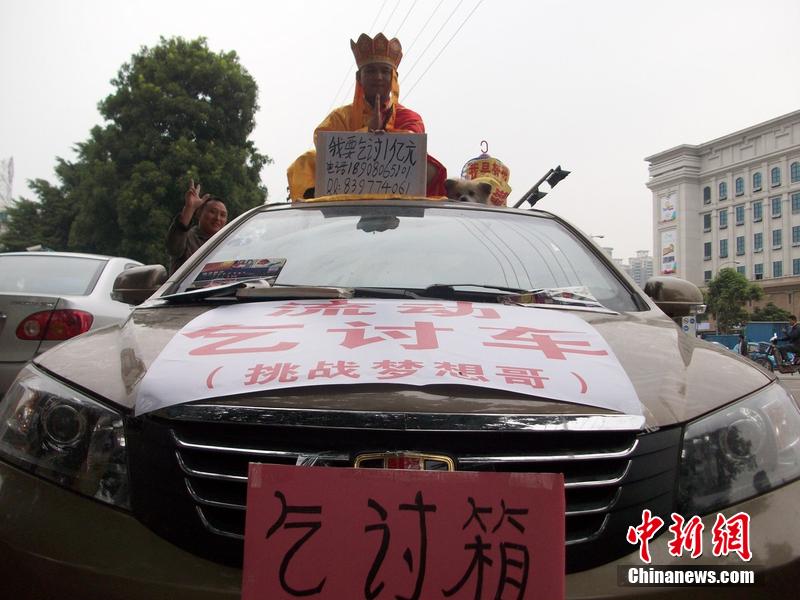 “我要开着轿车到全国各地乞讨,目标是一亿元,成功后就开一家烛光餐厅,所得利润将帮助更多人实现梦想!”图片来源:东方IC版权作品请勿转载