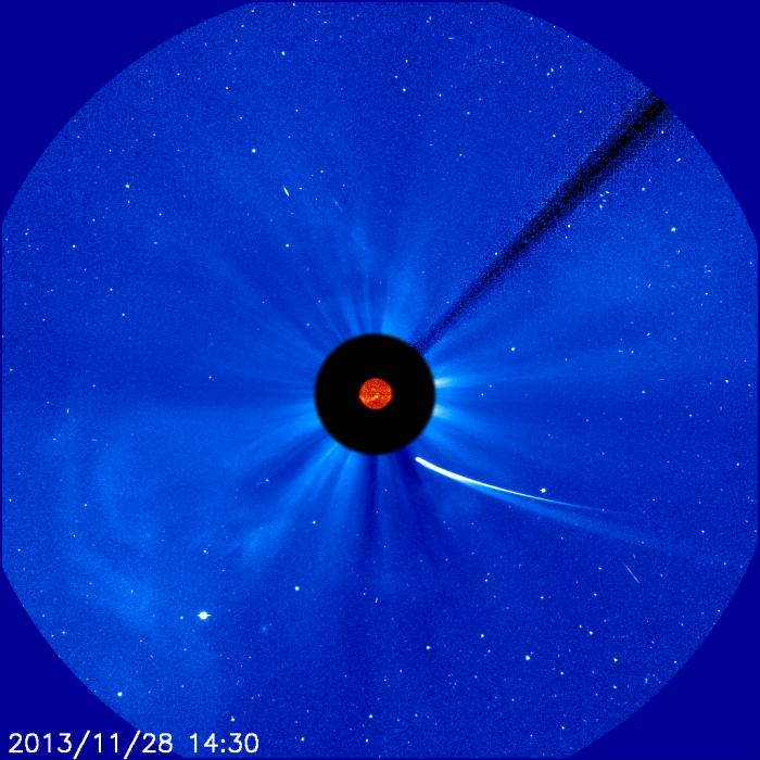 图为11月28日下午,ISON彗星逐渐接近太阳。图片来源:NASA