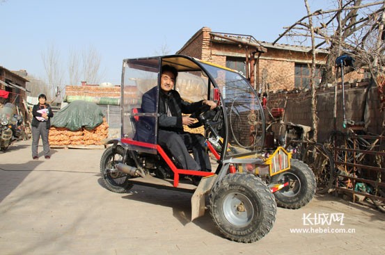朱占福演示自己制造的汽车。长城网 刘振山 摄