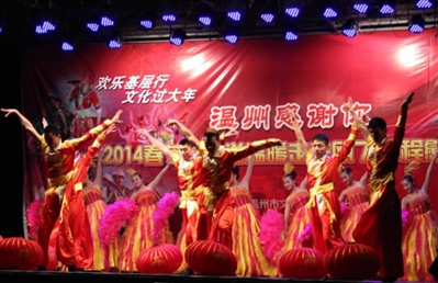 日前,由市文广新局主办、市文化馆承办的“欢乐基层行 文化过大年”2014春节文化送温暖慰问演出活动在瓯飞工程后方保障基地举行,50多名演出人员为300余名奋战在瓯飞工程一线的建设者们表演了15个精彩节目,为他们送去冬日的温暖和新年的祝福。
