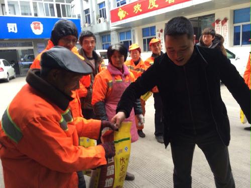 早上9时左右,负责早班清扫工作的环卫工人们陆续结束辛勤的劳作,回到了位于河头龙西路的公司驻地。李显淼和环卫工人一一握手,送上了新春祝福和慰问品。同时李显淼代表街道党工委、办事处对“城市美容师们”春节期间坚持工作为瑶溪人民创造一个干净整洁的环境表示衷心的感谢。随后慰问组一行还先后走访慰问了19个村居的环卫工人,送上新春关怀。