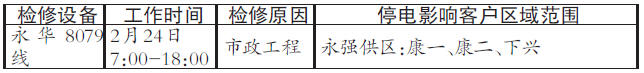因供电设施检修,我市供电公司计划在下列时段对以下线路进行停电检修,现将检修线路、停电影响客户区域范围列表公告如下,遇天雨改期,希各相关用户谅解并做好生产安排。