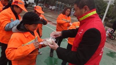 蒲州街道相关负责人表示,送汤圆活动是向环卫工人表达感激的一种形式,街道还将继续通过其他方式为环卫工人送温暖、送实惠。(陈灵丽)