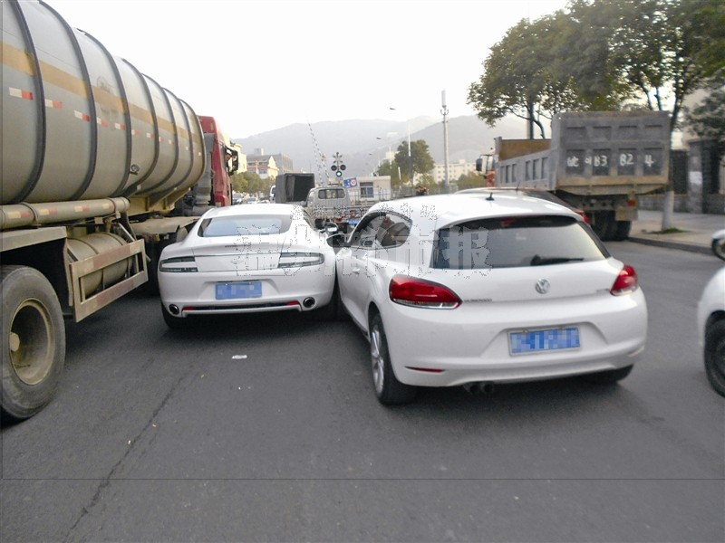 都抢着通过铁路道口 “大众”与“阿斯顿·马丁”刮擦
