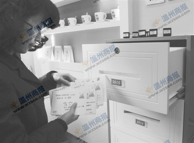 工作人员把部分明年寄出的明信片放进标有“2015”的抽屉里。 金鱼 摄