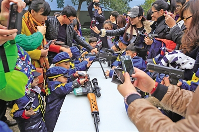 日前,温州市公安局特警支队开展警营开放日活动,市区一早教机构人员带领小朋友和家长们在支队大院参观警营和警用装备,了解警营文化。