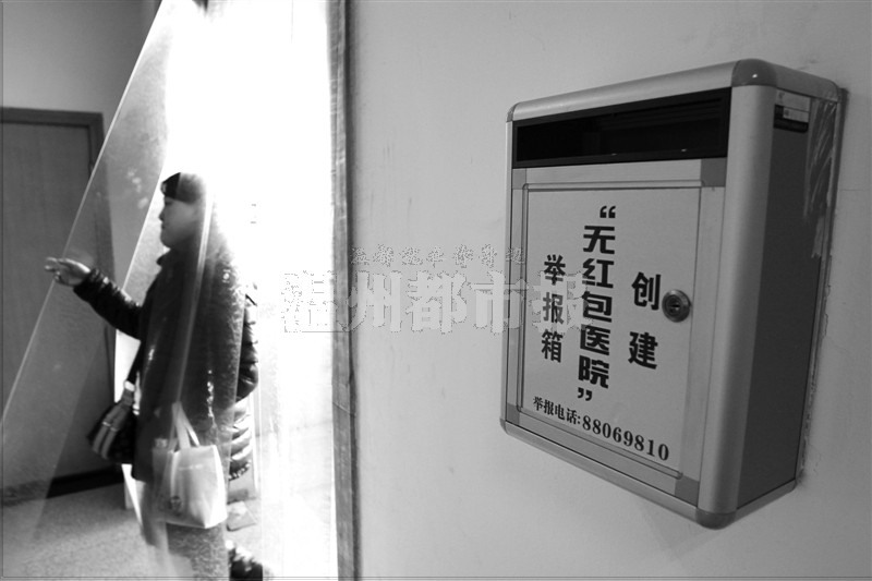昨天,在温医大附一院老院区,挂着一个创建“无红包医院”举报箱。据旁边执勤的保安介绍,这个箱子挂这里好几年了。温都记者王诚/摄