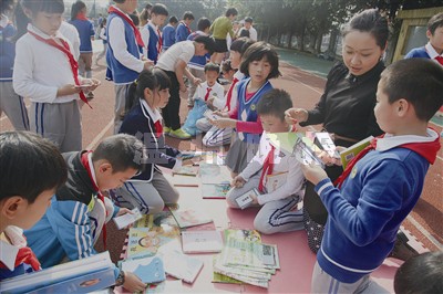 温州市实验小学新城校区三年级学生毛毛的新学期目标是,成为该校“读书银行财富排行榜”的“富豪”,寒假里他读了不少好书。在不久前的“读书银行”开放日中,同学们拿着阅读兑换来的读书币和“存折”排队等候,以此兑换读书称号。