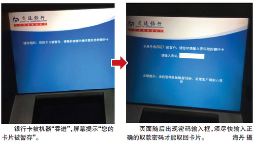记者体验:吞卡后60秒内输入密码即可取卡