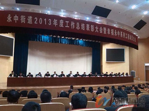 龙湾新闻网讯 2月27日下午,永中街道在龙湾区文化中心会场召开了2013年度工作总结表彰大会暨幸福永中系列工程动员大会,来自40个村居两委、报账员、计生员、大学生村官,规上企业代表、机关全体干部、市、区下派农村指导员,各基层站所负责人共500多人参加了此次盛会。