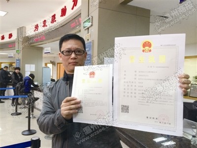这张竖版、带有二维码的营业执照,是3月1日起温州市推行注册资本登记制度改革后颁发的首张营业执照。昊泼摄