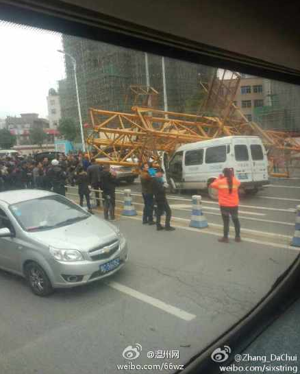 温州市区吴桥路一塔吊倒塌 路面多车被压