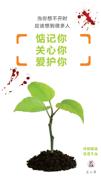 今天,按“兰小草”要求,设计了四分之一版的“最美公益广告”:“当你想不开时,应该想到有很多人惦记你、关心你、爱护你!珍惜健康,珍爱生命!”