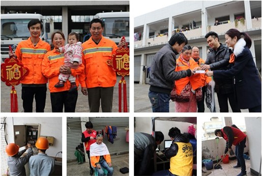 经过一个多小时的打扫,宿舍面貌焕然一新,环卫工人们理完发后,精神也焕发了许多,社区书记杨谦还给困难家庭送上慰问金。在欢乐忙碌的氛围中,摄影师给环卫工人们送上了最后一份礼物,拍全家福。手拿中国结拍全家福,象征吉祥如意,也是志愿们者对环卫工人们的深深祝福。