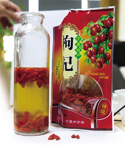 经过温水浸泡,宁夏枸杞会膨胀并浮在水面,北枸杞则会沉在水底。赵用摄
