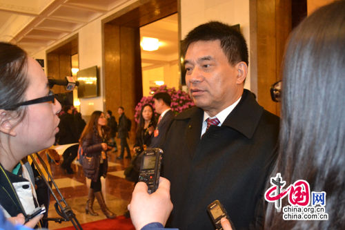 3月5日,十二届全国人大代表、新希望集团董事长刘永好在人民大会堂东门外广场接受记者采访。