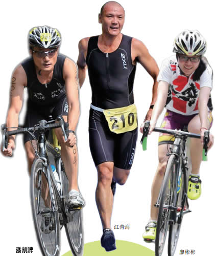 廖彬彬是玩铁三为数不多的女孩子,一次次参加比赛夺得全国业余比赛的冠军,用比赛奖金养活自己;潘凯骋是一个普通上班族,自从练上铁三后,原先体检查出来的身体毛病全没了,他便更投入地练铁三,想方设法挤出时间运动健身;江青海是一家游泳池负责人,三项实力均衡的他,去年一举夺得上海国际汽车城铁人三项赛男子40岁组全程冠军,他曾经在手术后仅40天就参赛,这一切都源于对铁三的喜爱,对挑战自我的执着。