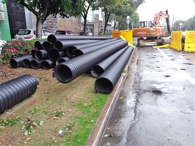 雁荡西路辅道施工的业主单位是温州高新技术产业开发区科技园投资有限公司,该项目负责人王工程师介绍,科技园整个片区的地下污水管网均已使用十年以上,原先用来排污的混凝土砼管已经破旧不堪,发生了雨污混流的现象。
