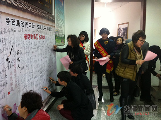 龙湾新闻网讯 3月5日下午,永中街道纪工委联合街道妇联在永昌社区文化礼堂举办“争当廉洁贤内助、共创永中幸福家”家庭助廉签名活动,活动现场,各村居党员干部家属代表、机关公务人员家属代表共300多人在签名承诺墙上写下了自己的名字。