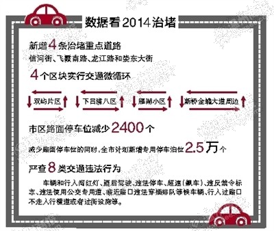 记者了解到,今年我市公安机关将从六方面措施推进治堵工作。在堵点和乱点治理方面,全面排摸调研中心城区交通堵点、乱点,对双屿客运中心、银泰商圈、附二医周边、龙腾北路周边、潘桥国际物流中心等交通堵点制订具体治理方案,实行分级挂牌治理,建立长效管理机制。在智能交通方面,进一步完善和发挥智能交通控制系统的建设和实战应用,治堵重点道路及各路口电子警察、信号灯协调控制、视频监控覆盖率达到80%以上。