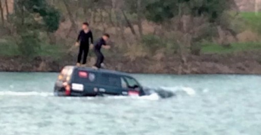 其后,老周在同伴的帮助下,经过2个多小时,借助其他越野车,把落水的越野车也拖了出来。