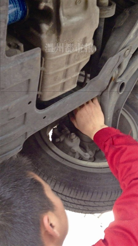 记者将车子仪表盘上有灯亮了、车子开起来比较抖、有较大响声等异常告知维修人员,维修人员开始对车子进行检查。约半小时后,维修人员表示检查清楚了。