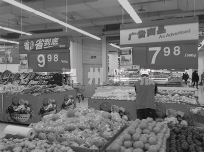 而在万达广场的永辉超市,其散装水果单价也是精确到分,购买后,营业员同样采取四舍五入的结账方式。