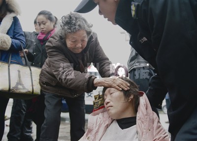 见老婆婆动手,周围有人劝她:“阿婆,你别乱动,动不好了,要你赔的。”可老婆婆好像没听到一样,只管自己掐人中。这样连续了几次,躺在地上的妇女慢慢睁开眼睛。老婆婆握着她的手问:“没事吧?有哪里不舒服吗?”这名妇女不说话,看了看周围,眼泪流了下来。