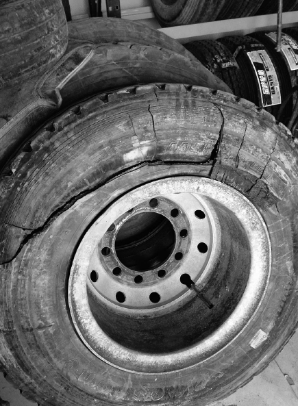 好端端的轮胎怎么会突然爆炸?余先生的同行们查看现场发现,发生爆炸的轮胎是由劣质轮胎改头换面后的“翻新胎”。他们认为,“翻新胎”是造成爆炸或爆炸后防护不力的主要原因。