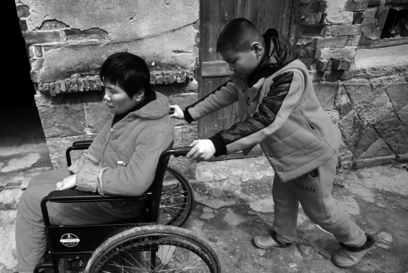 林杰说,他放学回家,一进门就会大声叫妈妈,只有妈妈答应一声,他的心才会放下来。有一次,邻居阿姨用轮椅把妈妈推到远一点的地方聊天,他的叫声没得到妈妈的回应,急得眼泪都掉下来,出去找了好一阵才找到。