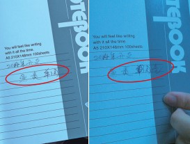 图为店内人员趁检查人员不注意,将收支本上的“羊”字涂掉,改成“肉卷”。记者潘贤群/摄