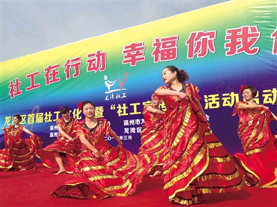 温州日报讯 (叶晓东/文苏巧将/摄) 昨天(3月18日)是一年一度的国际社工日。龙湾在状元文化公园举行首届社工文化节开幕式暨“社工宣传周”启动仪式,来自该区社工委成员单位和持证社工代表200余人参加了本次活动。